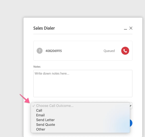 The new Call Outcome functionality will replace the existing Call Outcome functionality. Rather than pulling a list of call outcomes from Salesforce, as it does prior to this release, Sales Connect will now pull from a custom list that can be created and managed in the Sales Connect admin settings, under a new Dialer settings section.