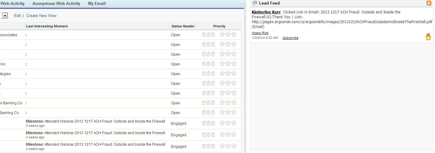 I just integrated Marketo Sales Insight, and I can't figure out why my "flames" aren't on fire. The Last Interesting Moment is being recordered but this doesn't seem to be changing the flames. Also, when I click on the Web Activity and Anonymous Web Activity tab, nothing shows up. I can tell from Marketo that people are visiting our website, I just don't understand why this data isn't being pushed to Sales Insight.