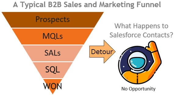 - Not a Permanent Detour. Prospects don’t get stuck in the Contact graveyard. They can recycle back to Sales just like a Lead would.