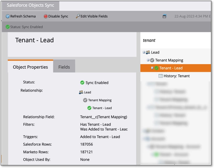 I see the MtM object is available for syncing, but I would also expect to see the Membership object under that MtM object if supported. I believe permissions are configured correctly. Marketo has the disclaimer "Marketo only supports custom entities that are linked to standard entities one or two levels deep. " That statement isn't clear if a custom entity linked to another custom entity is supported.
