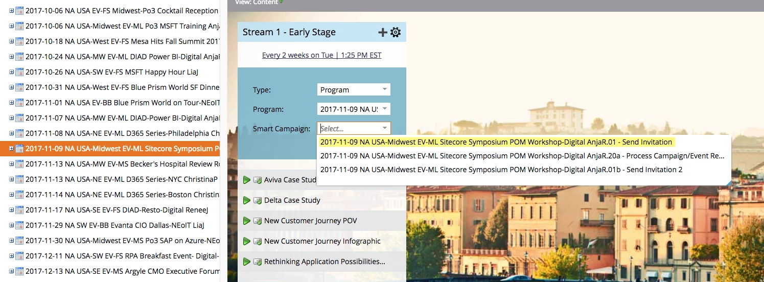 Make sure the event program is listed under "Program"; and then select the "send invitation" smart campaign.