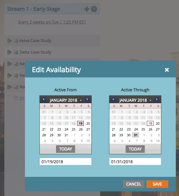 Event programs are great to use within engagement programs - especially since you can define their availability (e.g., making sure the invitation isn't sent AFTER the event has already taken place) using the "edit availability" feature: