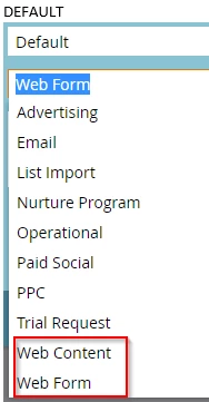 As when I'm creating Test Default Program there is no such Channel option, only Web Content, Web Form:
