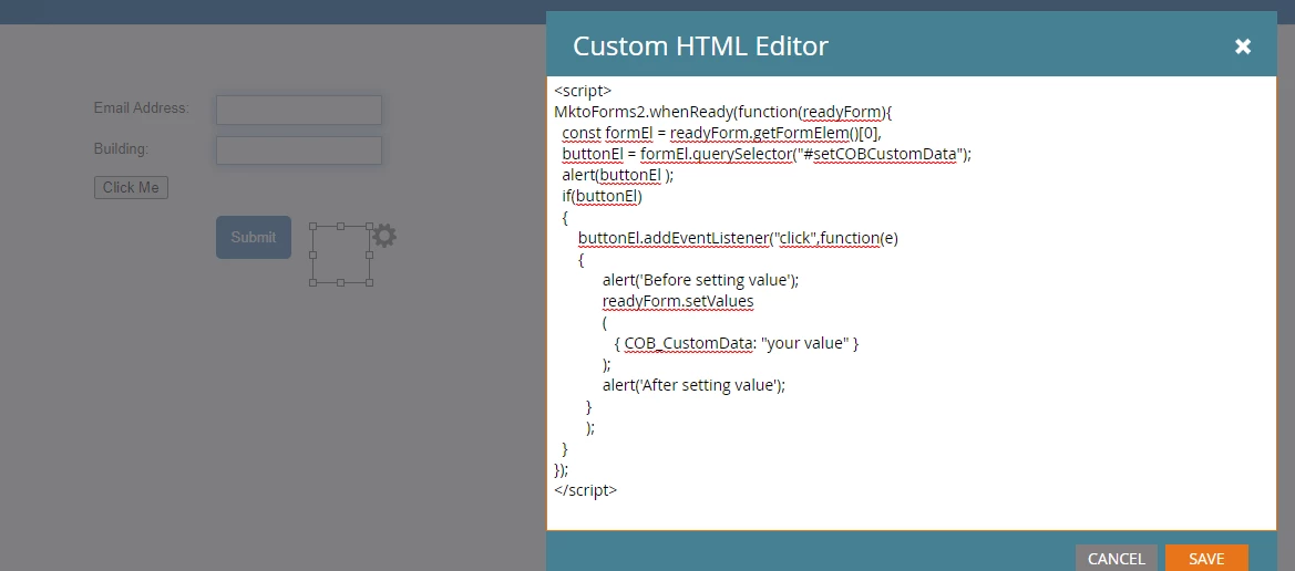 I have a Marketo form with a Custom Field and would like to update it with some value.