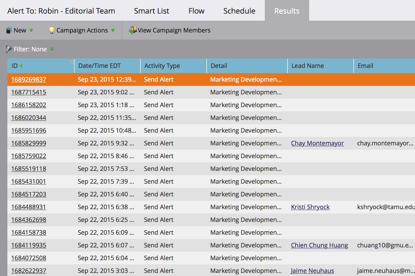 I have recently tracked about 15 leads who have clicked on a link in my landing page. However, only 3 of the 15 have names etc. listed with them. The rest have no information except the lead ID. Is there a spot that I could look up the Lead ID and figure out these missing names?