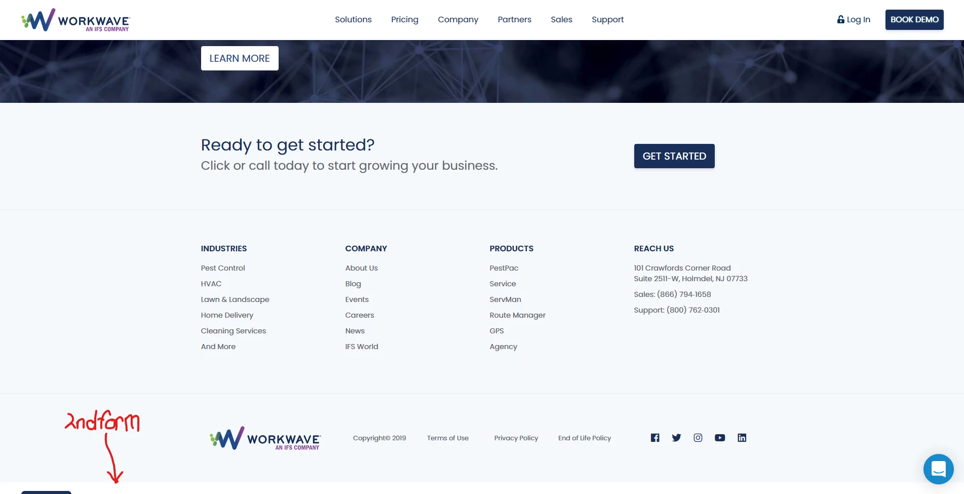 I am noticing on my pages that have a Marketo form that a second form tag is added to the bottom of the page and it has no form id. This second form tag creates a white bar below the footer of the page. See the issue here on this page. https://www.workwave.com.