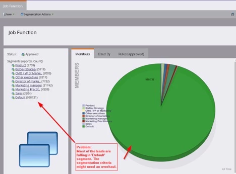 For example, if your ‘Job Function’ segmentation has a segment that is for ‘Lawyers’ and you do not have a single lead matching that segment, maybe that segment is redundant, like the ‘Unused segment’ in the following screenshot.