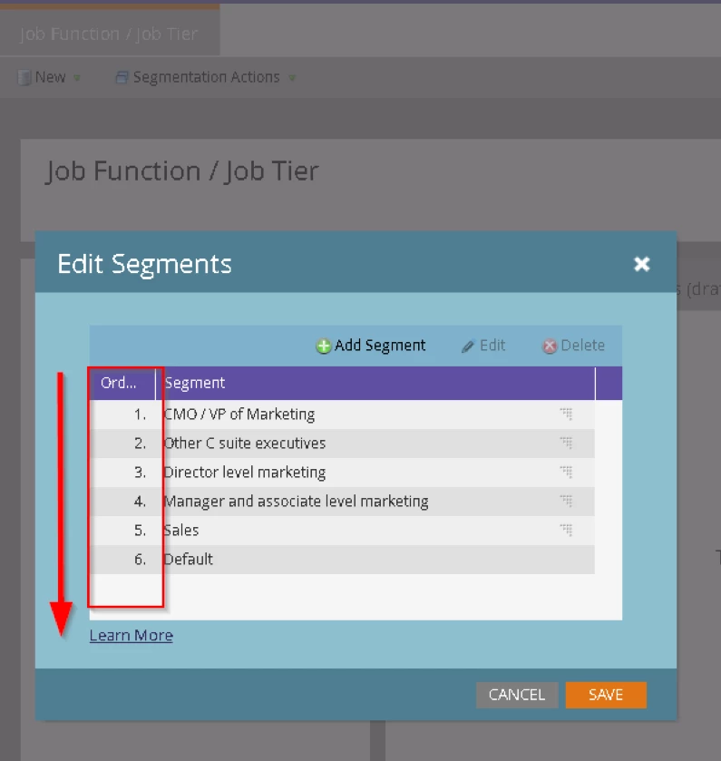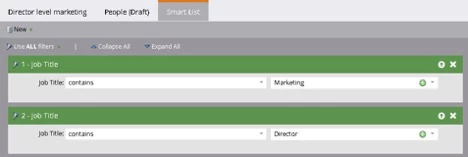 For example, let’s say you have a segment for ‘Directors of Marketing’ with criteria like:
