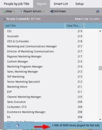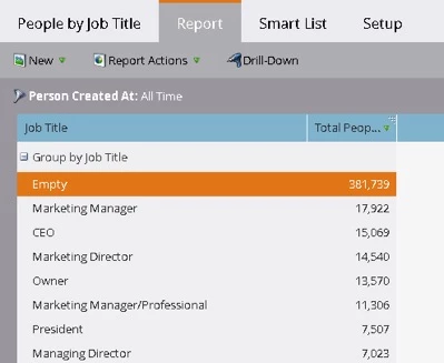 For ‘Job function’ segmentation based on ‘Job Title’, ‘People by Job Title’ report will help to find out what unique values we must consider for segmentation logic and priority. Here you see a possible 5000 different values that need to be considered.