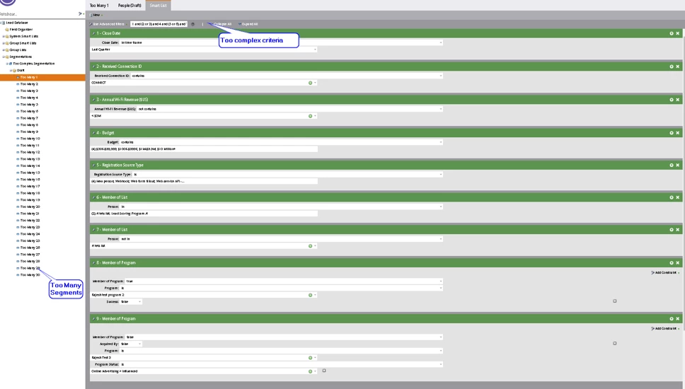 - Too many segments in a segmentation