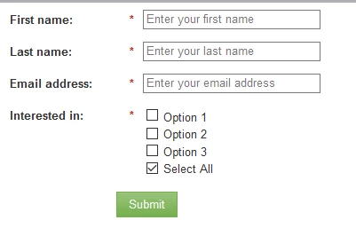Is it possible within Marketo to setup a form to have a select all checkbox? It would function like this: