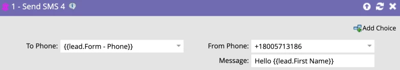Send SMS Self Service Flow Step