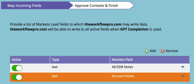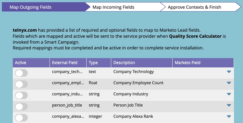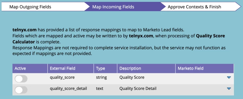 - The "Callback Payload Definition", which is where you tell Marketo what information your service will send back and how it will be mapped to different lead fields.