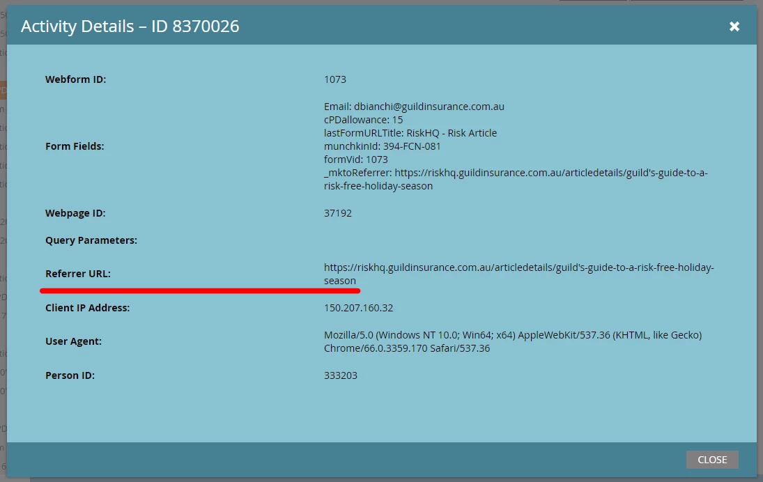 We have tried to include a hidden field to auto-populate the URL so that we can then send an email to the user as a record of when they viewed the article, and which article they viewed.