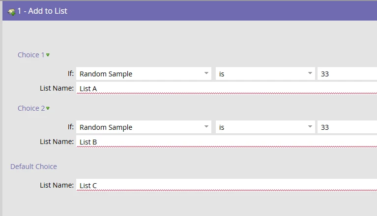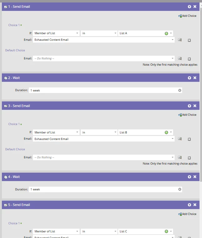 I have a program with 9 different streams (A - I). Everyone begins in stream A, and based on their engagement and info we know abut this person, they move into one of the steams B - I once they have come to the end of the content in stream A.