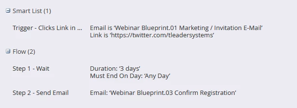 Path 1: a trigger would take place if a link is clicked in email 1  which then leads to a wait time of three days and then sending email 2.