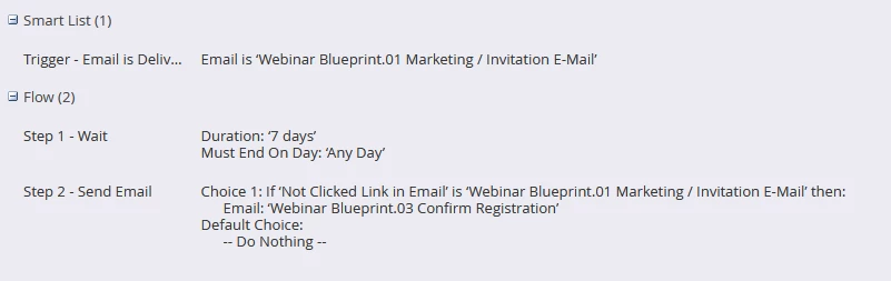 Meaning: When the email is delivered ("received" is not really a Marketo term. Marketo cannot know if the email was actually "received". Let's use "delivered" here - otherwise you might as well use "opened"), a 7 day wait starts. After 7 days the Smart Campaign evaluates if the email was clicked, and if it wasn't it sends email 2.