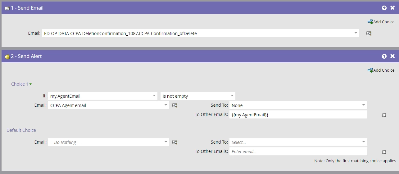 As my company is setting up different email flows to comply with the CCPA regulation, I have one requirement that I cannot figure out and need some help.