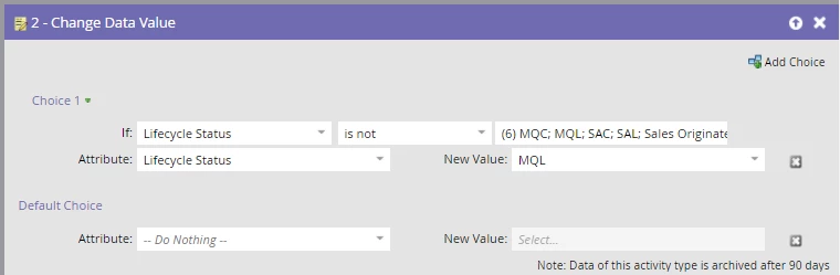 Setting a Lifecycle from SAL to MQL to SAL again.
