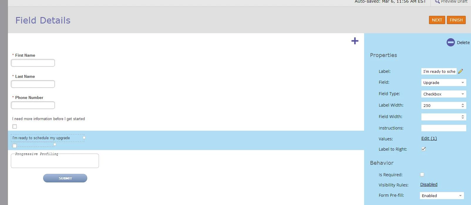 Thanks for your help. This is my first time building a unique form so more specific direction/screenshots are needed. Could you please tell me exactly where/how would I set the trigger? Is it in the form design or is it in the trigger?