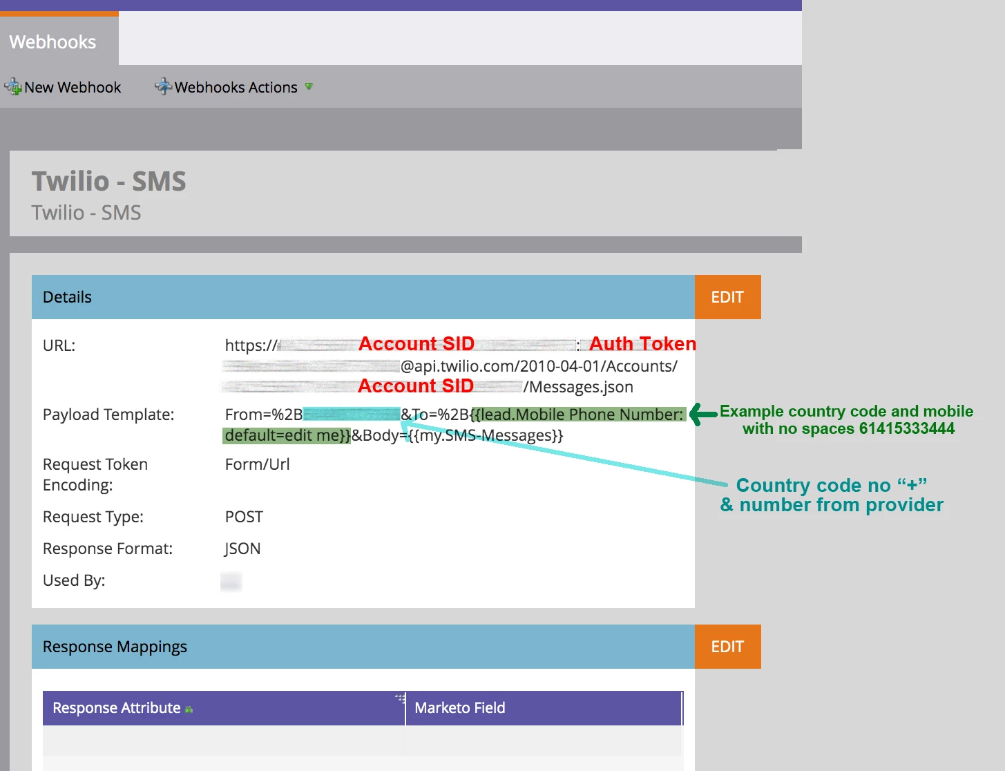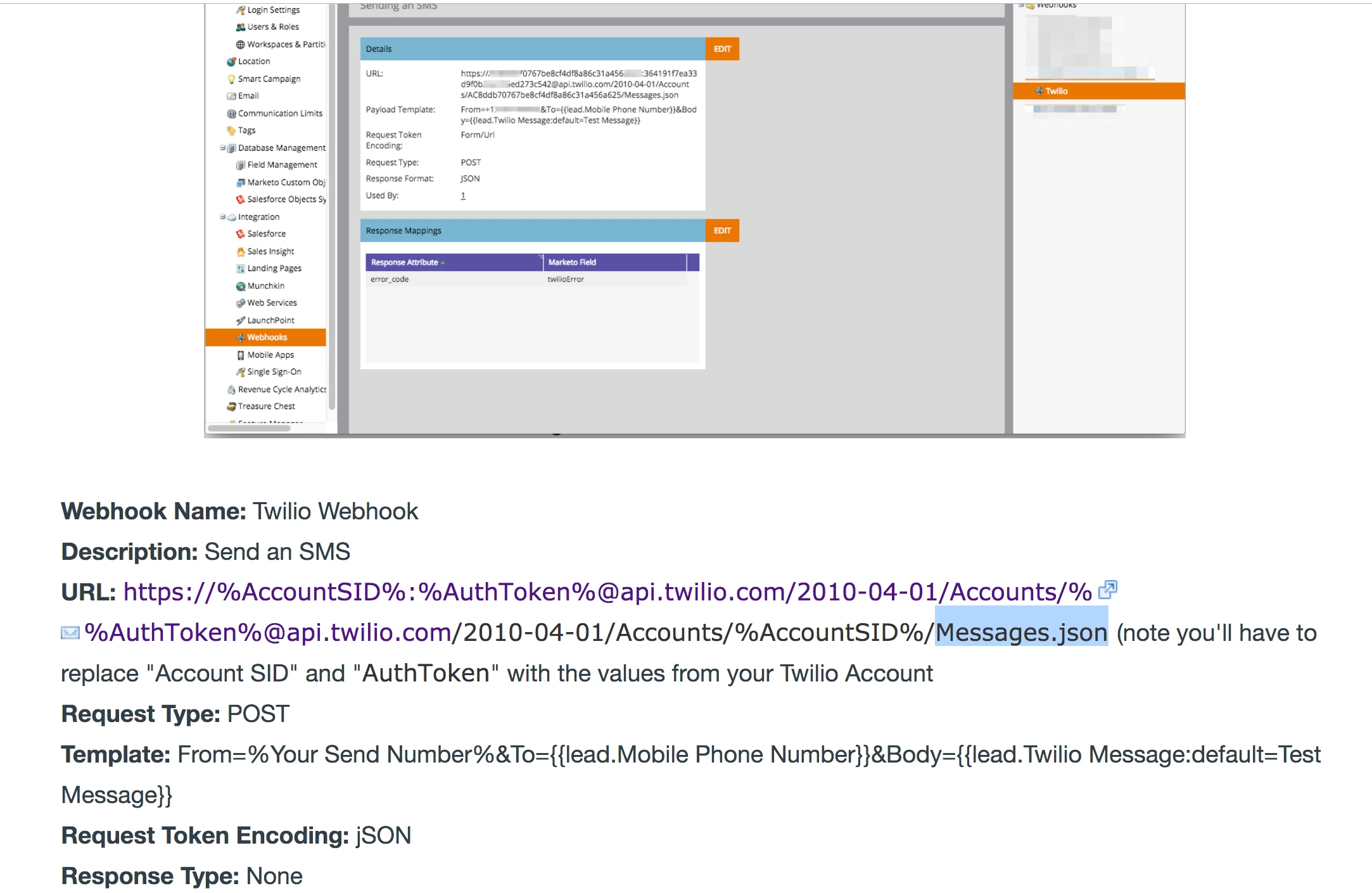 Sorry I am having issues setting up Twilio and the Marketo webhook.