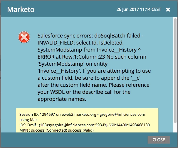 We are using a salesforce table call "invoice", mapped into Marketo. This table has some fields that are historized, which data is stored in a "history" table that we have mapped too (and it is therefore a second level table):