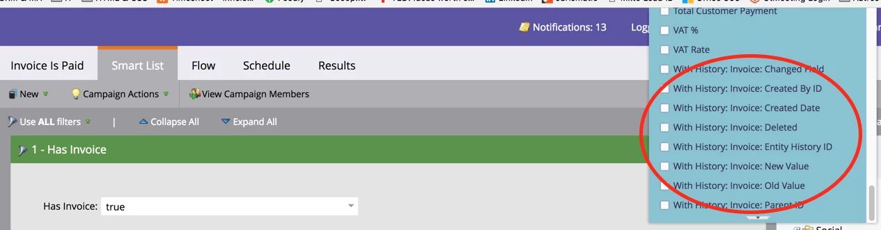 The result is that we now have some advanced constraints in the "has Invoice" filters.