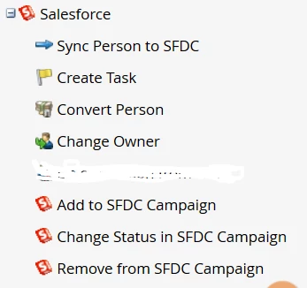 2. Manual sync using smart campaign flow action: Any lead part of a smart campaign with any of the following flow action will be synced immediately in SFDC (it will by pass the automatic sync cycle and will consume additional SFDC API calls):