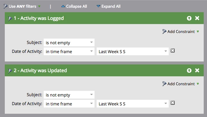 I need to pull some smart lists based on SFDC last activity date. All I can come up with is "Activity was logged".