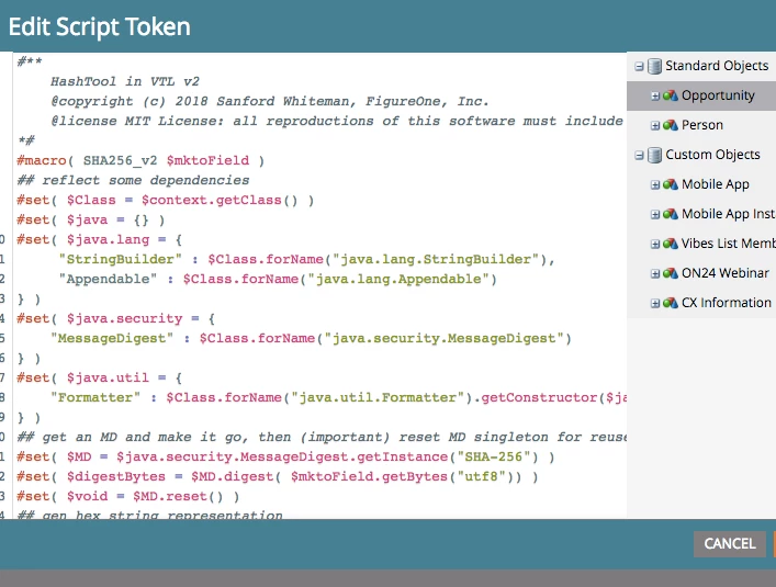 Can't believe someone other than me has thought about cryptographic techniques in Marketo! But in this recent Nation thread, a user asked about attaching the SHA-256 hash of a recipient's email address to (email) links.