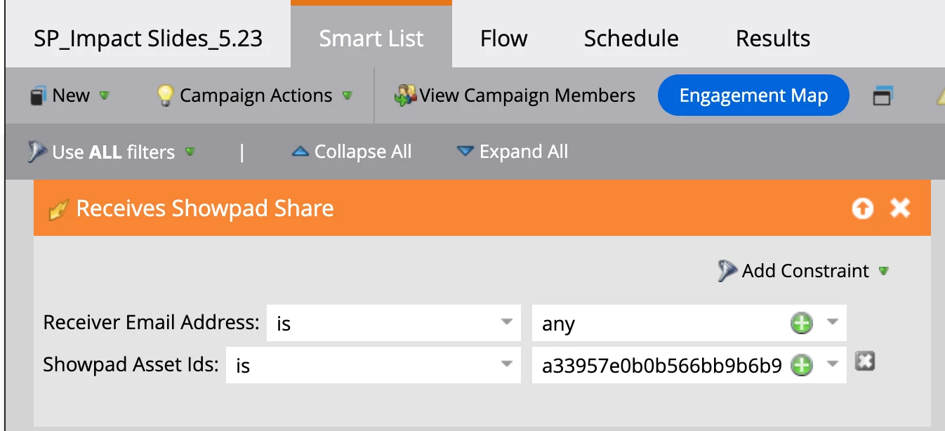 I have integrated Showpad with Marketo and set up the following flow in Marketo to get Showpad shares to be added to Salesforce campaigns. The problem is it does not seem to be picking up any results despite Showpad shares happening from Showpad. I have not been able to get any good answers from Showpad themselves on how to manage this integration so I'm hoping someone on the forum can help me understand how I can get Showpad shares to record and then sync to Salesforce campaigns.