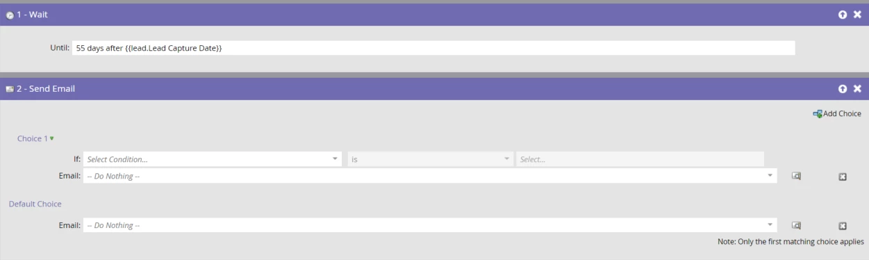 Truth be told, I don't always endorse this tack over multiple Smart Campaigns. Whatever’s making you want drastically variable Wait periods (other than implicitly variable periods like wait-until-anniversary) may mean the lifecycle is going to differ in other ways as well, in which case discrete SCs help you keep your sanity. But it's there if you want it.