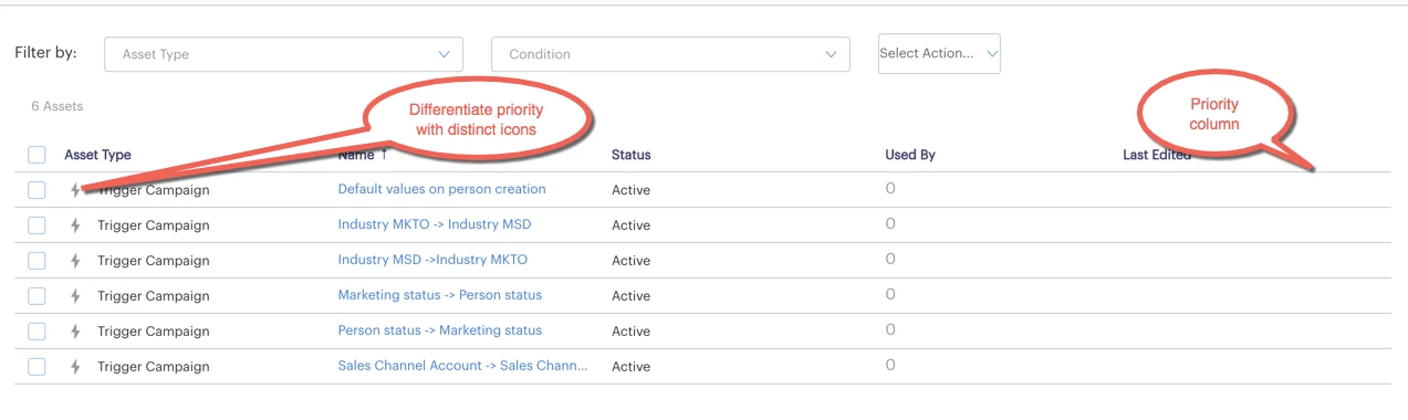 Now that we can override smart campaign priorities we would need some UI enhancement to better manage this. Tipically, we should be able to see the SC priority without to have to drill down to each smart campaiugn, directly from the program asset tab: