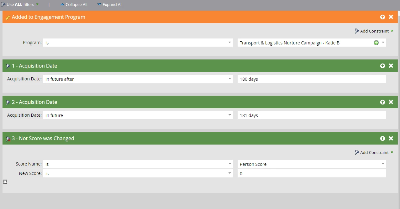 I want to marketing disqualify any leads whose person score has remained at zero for 180 days, will the below smart list work?