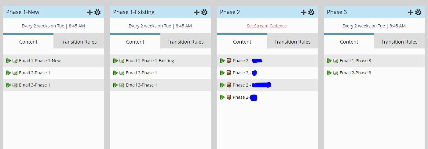In this engagement, I am trying to have people who complete the stream "Phase 2" move over to the "Phase 3" stream when they exhaust the content possible in Phase 2. I usually use the trigger "Email Delivered" with the last email sent in the previous stream, but in this case they will not receive every email based on the smart lists. Is there a trigger that I can use for this? or does anyone know work around?