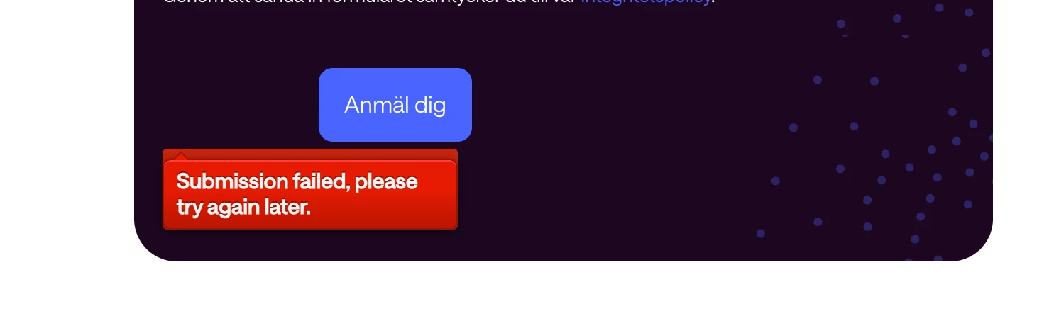 we are experiencing issues with one form that sometimes and to some users returns "Submission failed, please try again” error. I checked this blog and could not find two forms on the page.