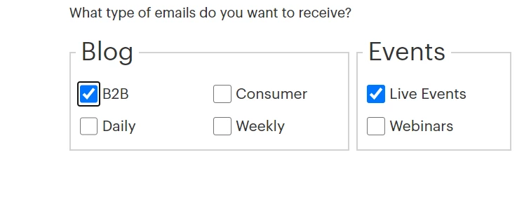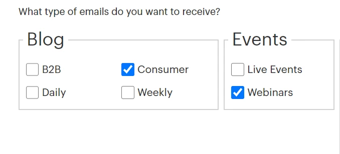If for example, a subscriber first choice is B2B and Live Events and then the subscriber would like to change to Consumer and Webinars what program should be created to change the values for the B2B and Live event to false and to change the data values for Webinars and Consumers to TRUE?