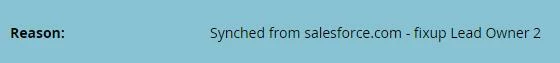 Has anyone had an experience with leads who are initially assigned correctly, but later (sometimes moments, sometimes days) the lead is reassigned back to a queue? The queue owns the lead prior to MQL, at which point leads run through the assignment rules. Even if the lead were able to flow back through the assignment rules, it would not meet the qualifications to be assigned back to this queue. When auditing the activity log I'm seeing two strange "reasons" listed for the change: