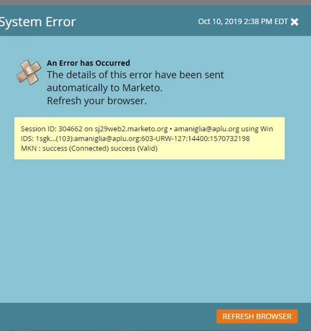 This error message has been popping up anytime we upload an image to an email (they will upload, but this error message appears).