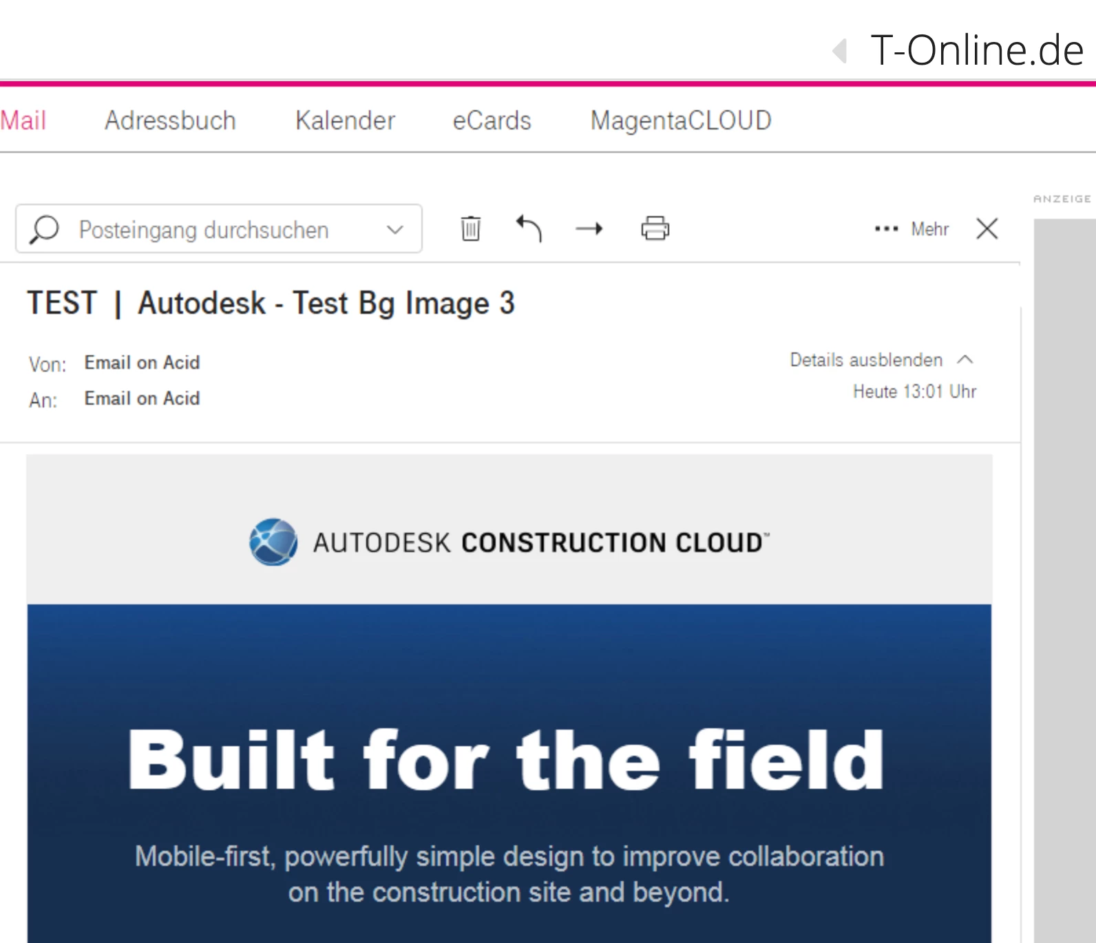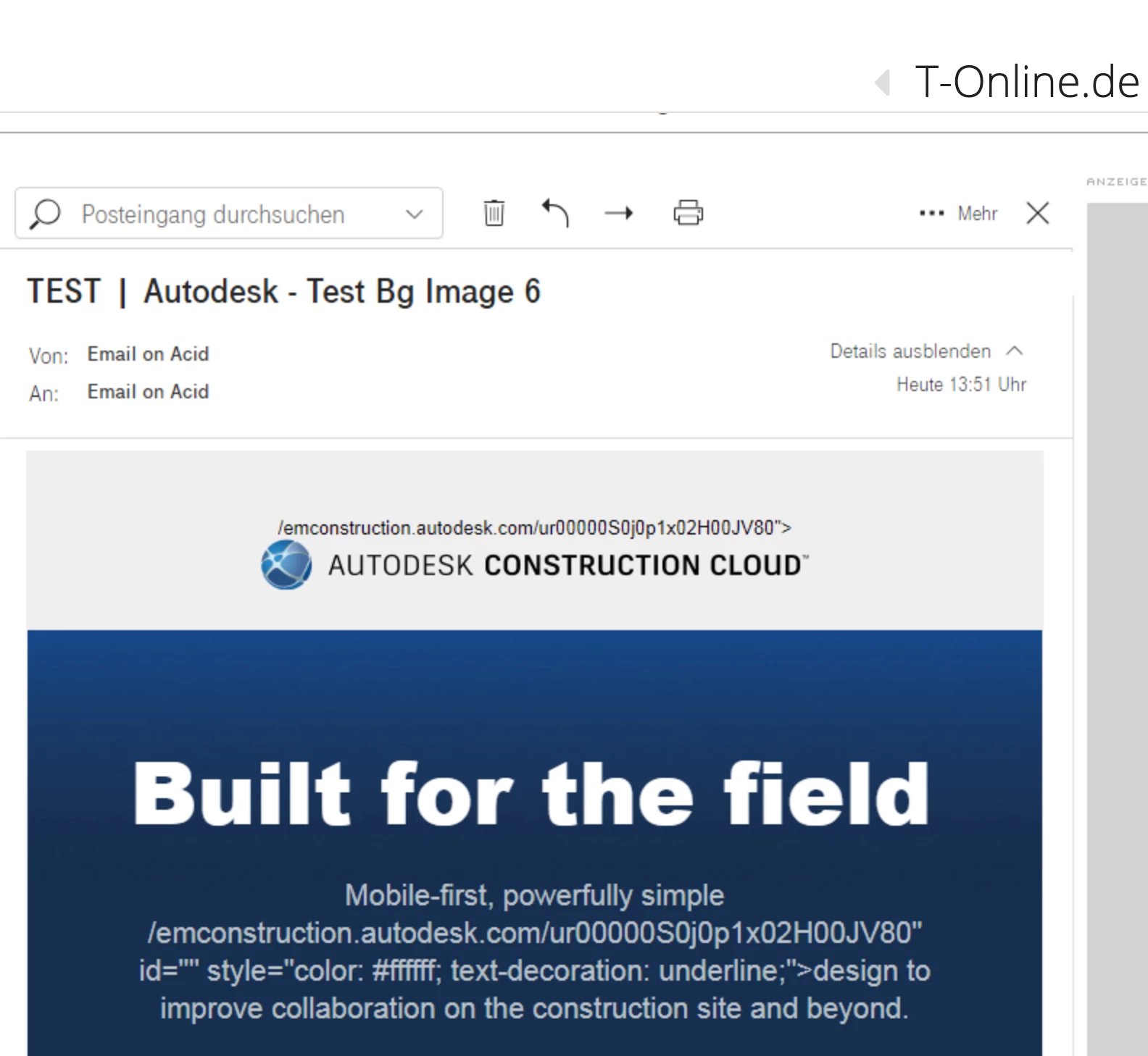 With Email on Acid, we can see the code that is sent to T-Online.de and I did realize the link is formatted correctly but cut on a few lines (the highlighted part in the following screenshot):