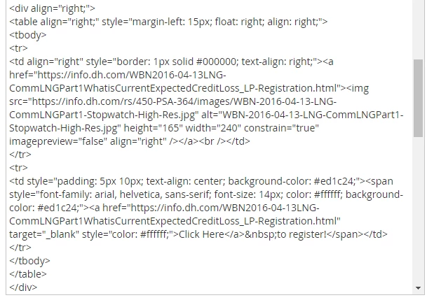I'm sending samples to my outlook email and my table keeps showing up as left-aligned when it should be right-aligned. But when I preview email in Marketo, the table is right-aligned and when I send to my gmail the table is right-aligned. Outlook doesn't seem to accept floats, so I used <table align= "right;"> but it didn't help. I can't remove the "float: right" element either in Marketo because it immediately will push table all the way to the left in the editor view.