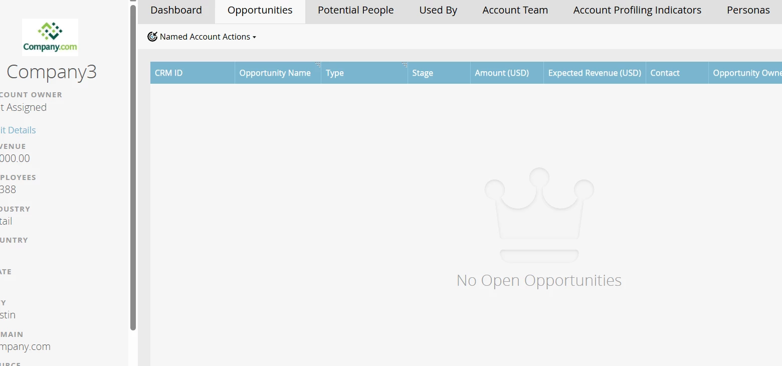 We want to start TAM for Account based marketing but we are unable to see the opportunity information even though Person has opportunity information and is linked to a Company which is one of the account in our new named account.