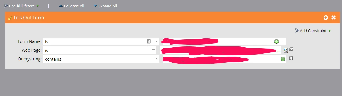 Targeting Url String For Webpage Form Fill - "Contains" operator on Filled out Form under webpage constraint doesn't work