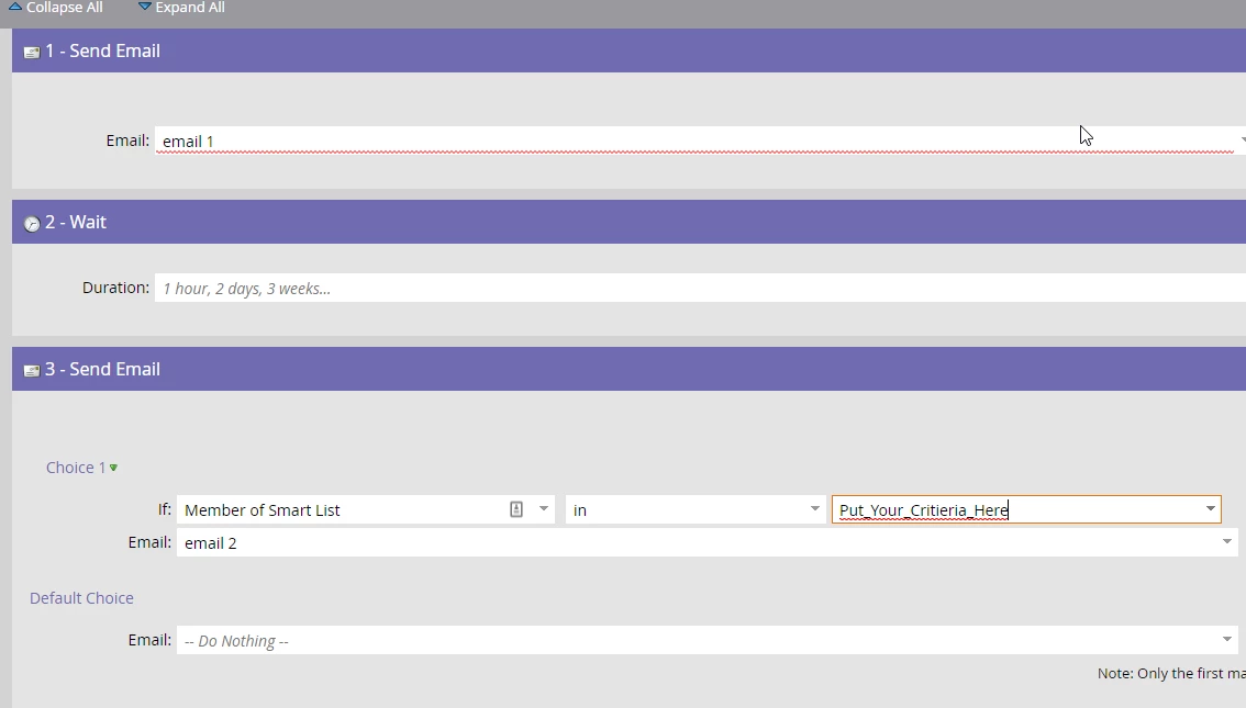 2) Email 2 - 14 days after + criteria based on email 1