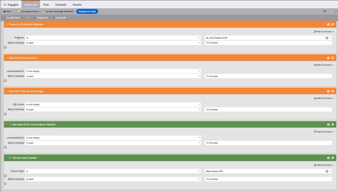 Hi all, I've created a Drift Chat Playbook and tested to see if all is working well and the integrations with Marketo & SFDC works well. I've realised that when checking the program for the Playbook in Marketo no results are visible on the program level. However, once I've searched by my email address in the database I was able to see that in the activity log. I've checked In Drift the Integration settings with Marketo and all looks good.