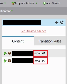 - In the above Stream, if you check Default Programs #1 and #2, they use the same emails as previously shown Smart Campaigns.