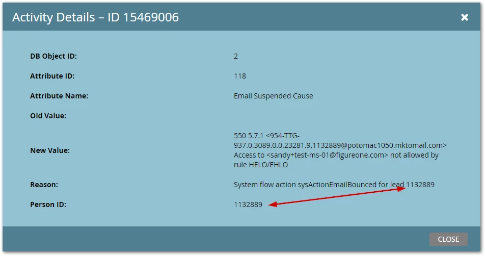 You’ll first see Email Suspended Cause set for the specific lead who bounced: