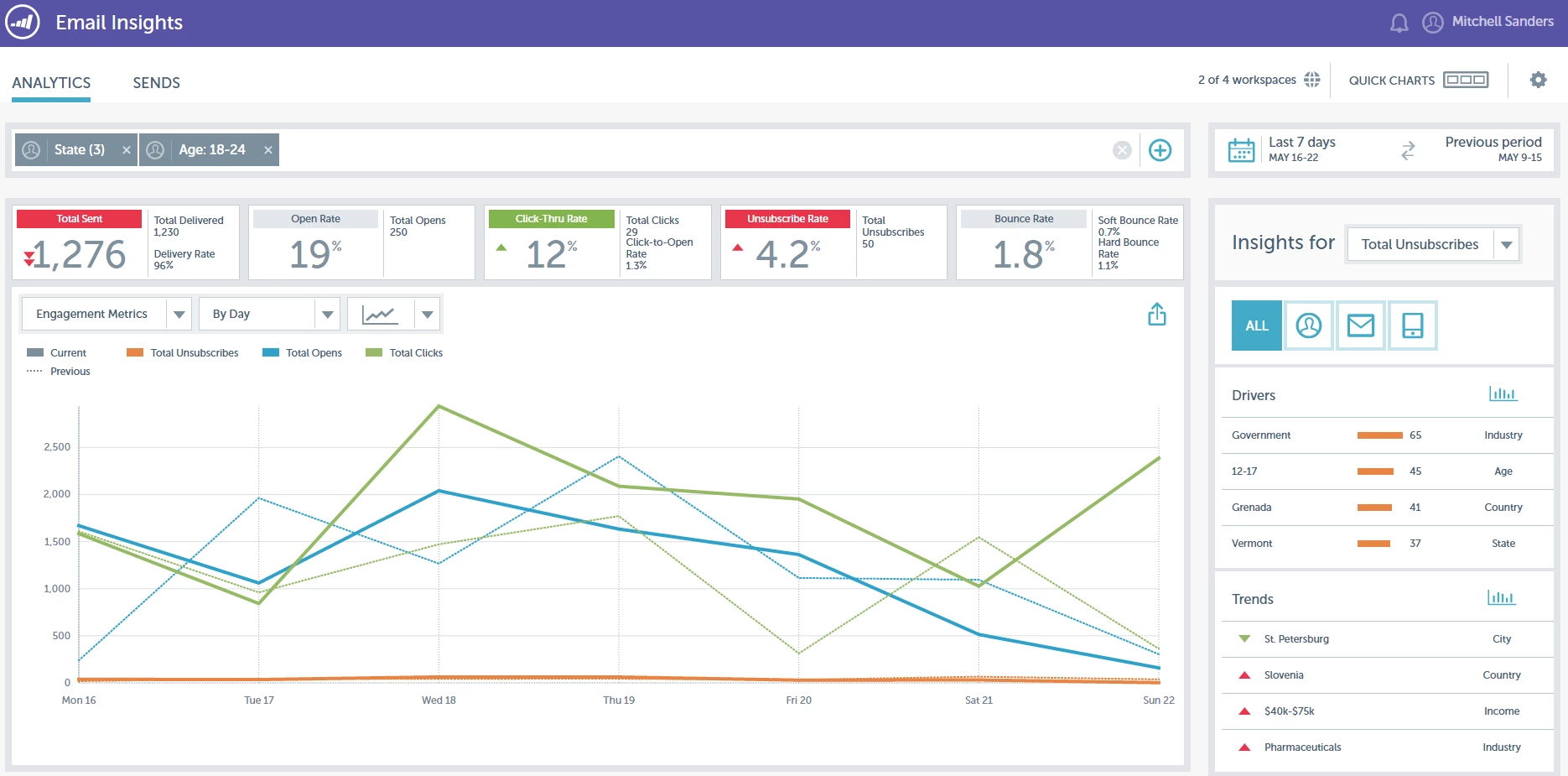 The key innovation here is the “insights” part. The report will proactively surface new insights for the user, such as “you have the most opens in the state of Florida.” What you do with that is up to you - but it's nice the report is taking an active role to push these factoids in front of the marketer.