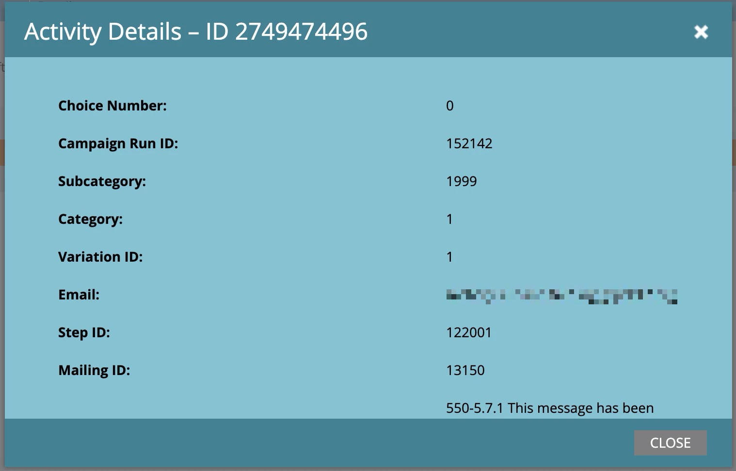 - the last email sent when the bounce was experienced