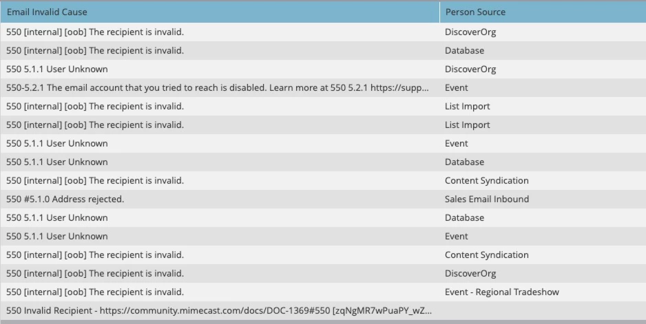 - Category 2 Hard Email Bounces - Resulting in Marketo Persons Email Invalidation